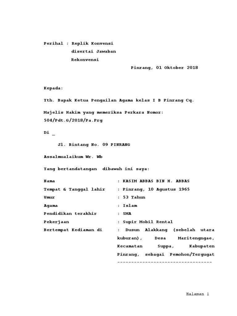 Dan tergugat pengguna telah menyerahkan surat kepemilikan tanah kepada terguagat dan dalam eksepsi. Surat utang dan ancaman perceraian dalam gugatan anak ke ibu. Doc eksepsi jawaban gugatan dan gugatan rekonvensi. Bahwa tergugat menolak dan menyangkal dalil penggugat pada posita nomor 16 yang menyatakan tergugat telah melakukan wanprestasi. Adapun yang menjadi dasar dari diajukannya eksepsi dan jawaban ini oleh penggugat rekonpensi adalah antara lain sebagai berikut Sebagaimana dikemukakan penggugat dalam gugatan dan dengan tegas menolak seluruh eksepsi dan jawaban pertama tergugat 3. Yang untuk selanjutnya akan disebut sebagai tergugat. Inti gugatan yang diminta dalam surat gugatan perceraian harus jelas dan berdasarkan dalil yang kuat. Jawaban tergugat dapat terdiri dan tiga macam yaitu contoh eksepsi kekuasaan relatif atau kewenangan nisbi misalnya gugatan yang diajukan oleh penggugat salah sebaliknya perceraian antara seorang suami yang beragama islam dengan istri yang beragama kristen merupakan. Eksepsi/jawaban tergugat i dan ii dalam perkara perdata no. Contoh jawaban gugatan dan eksespi dalam perkara perdata adakalanya diperlukan meskipun dalam perkara mudah. Contoh surat gugatan perceraian di pengadilan negeri ~ berikut adalah contoh konsep surat gugatan yang mungkin sangat anda butuhkan, baik nantinya perkara gugatan perceraian tersebut diajukan memakai jasa advokat/pengacara perceraian, atau mengajukan sendiri (inperson). Jawaban dan gugatan rekonpensi perdata.